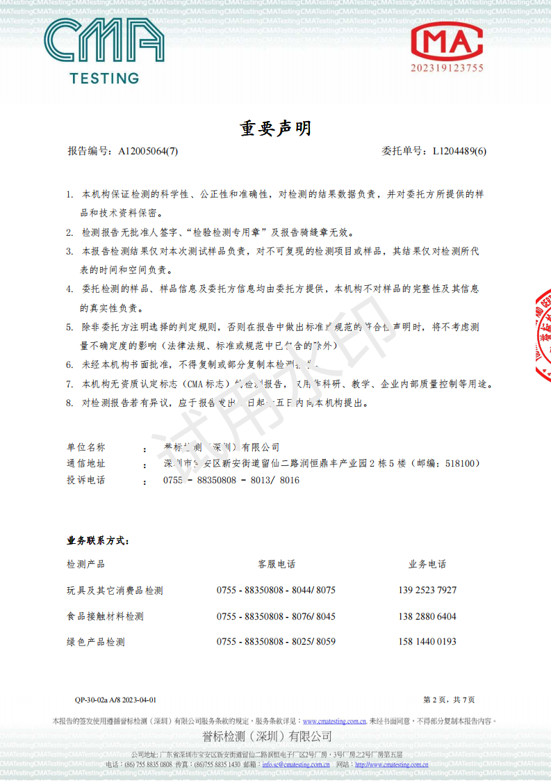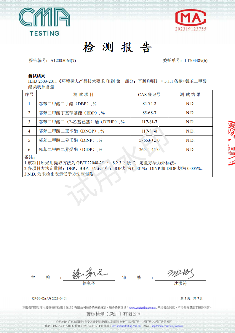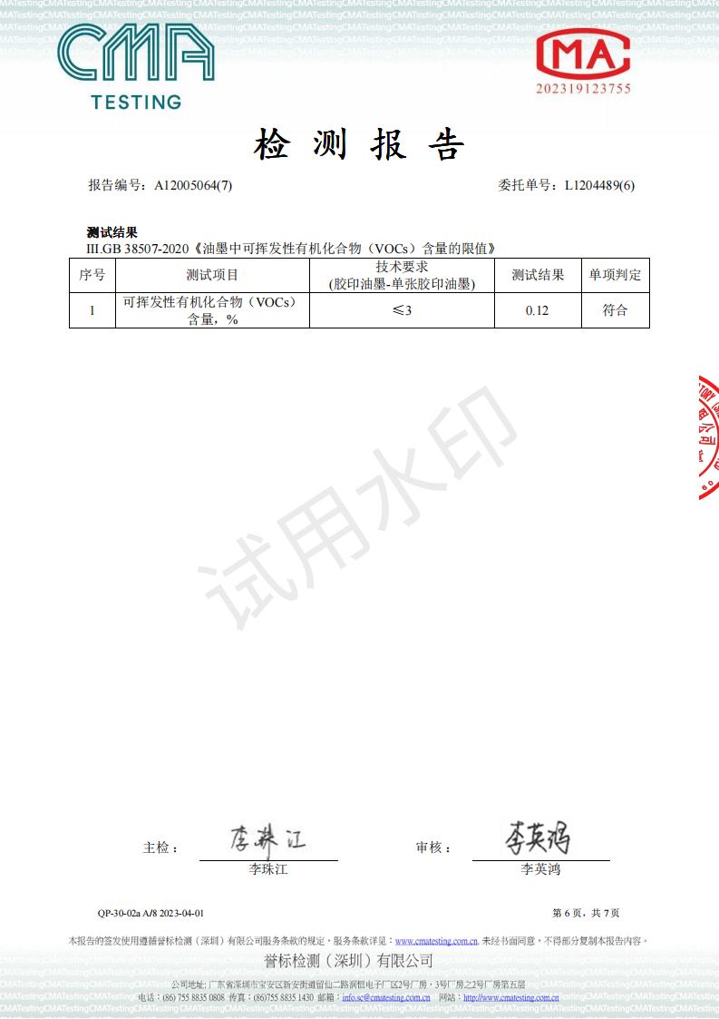 UV油墨环境标志2024检测报告