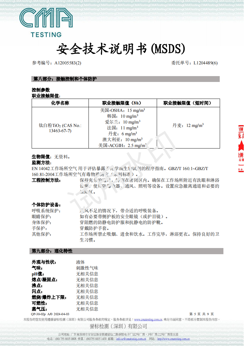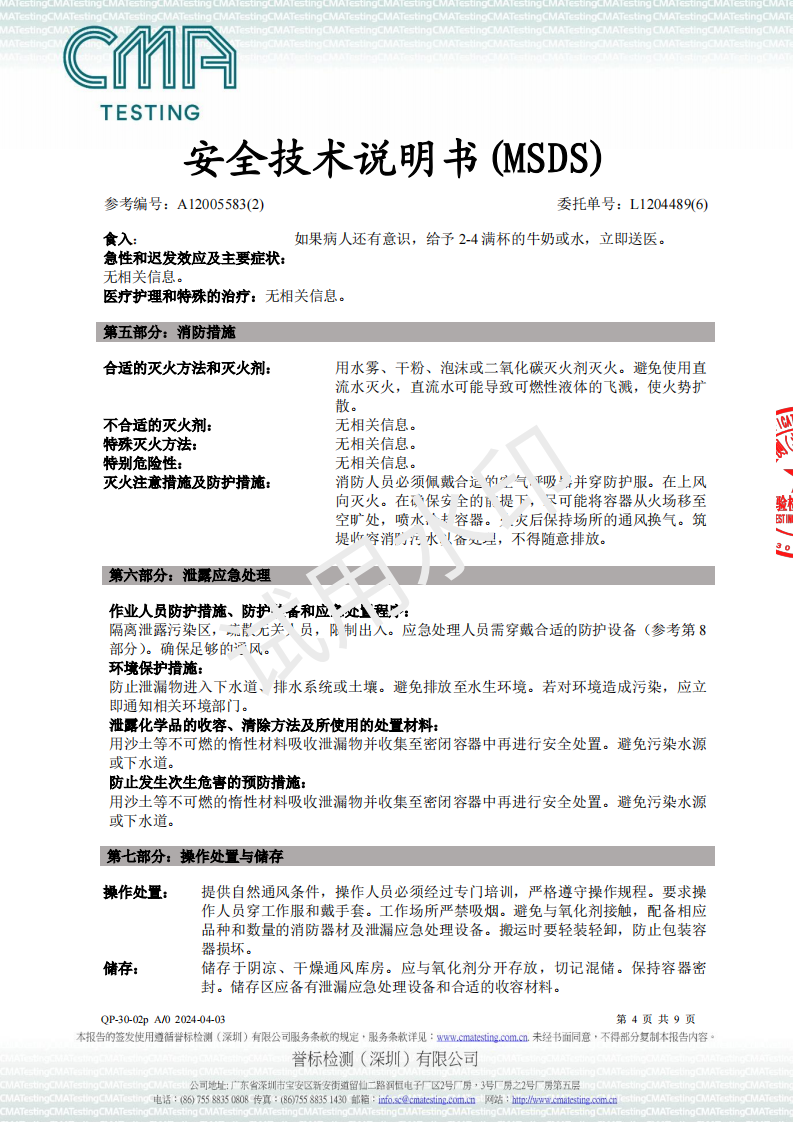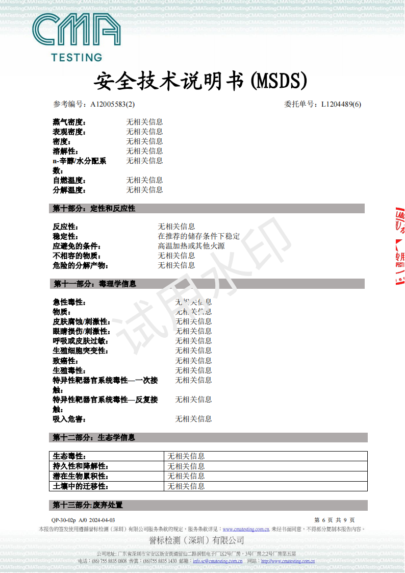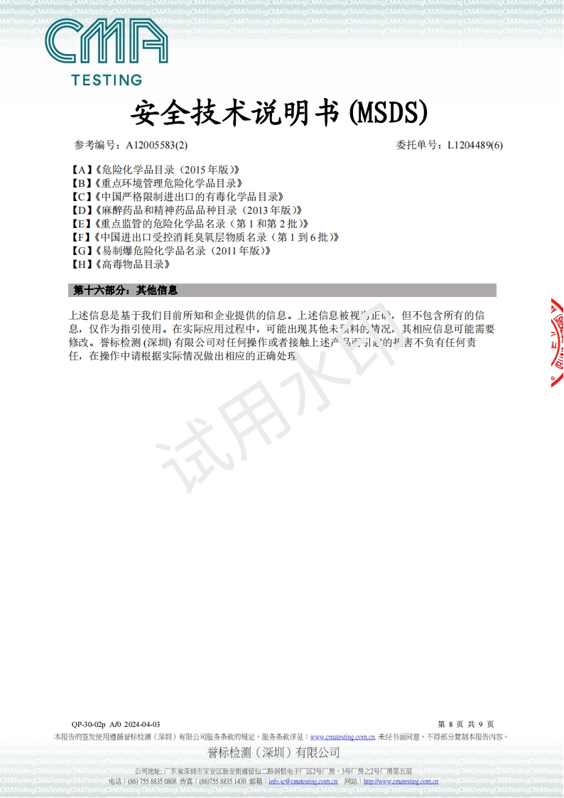 UV油墨MSDS-2024检测报告