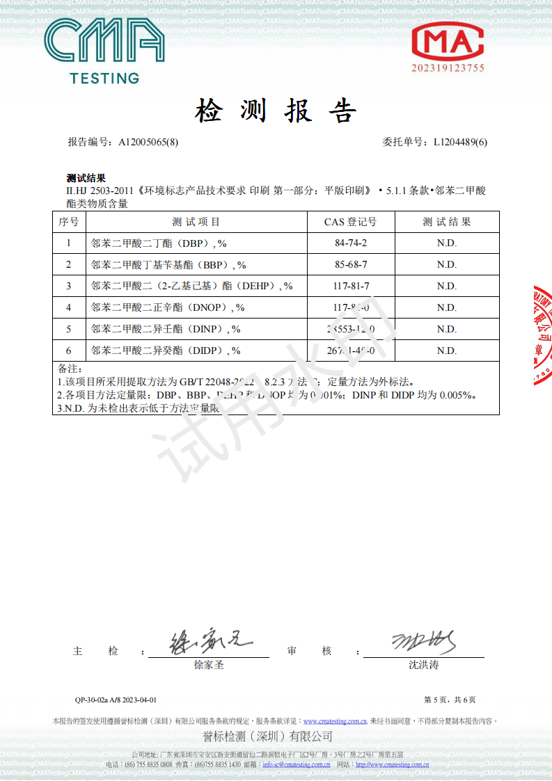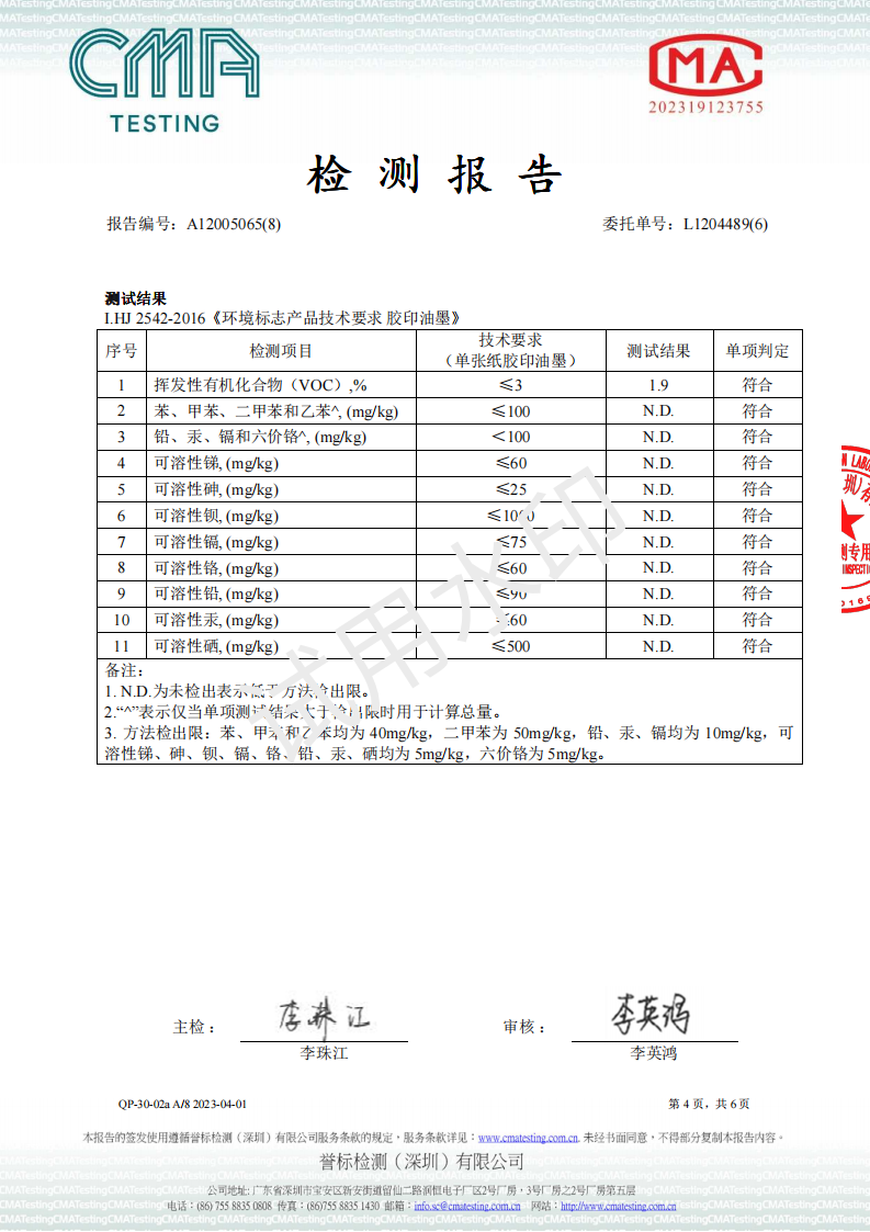 UV油墨环境标志2024检测报告